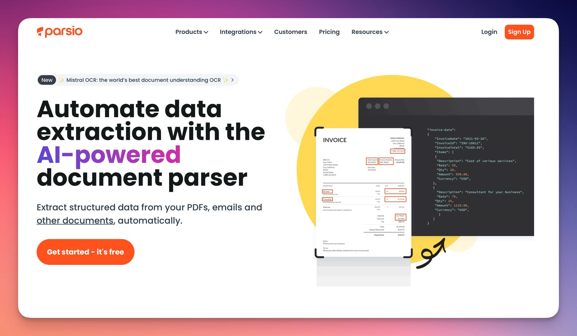 Parsio is a powerful document extraction platform that combines multiple parsing approaches.