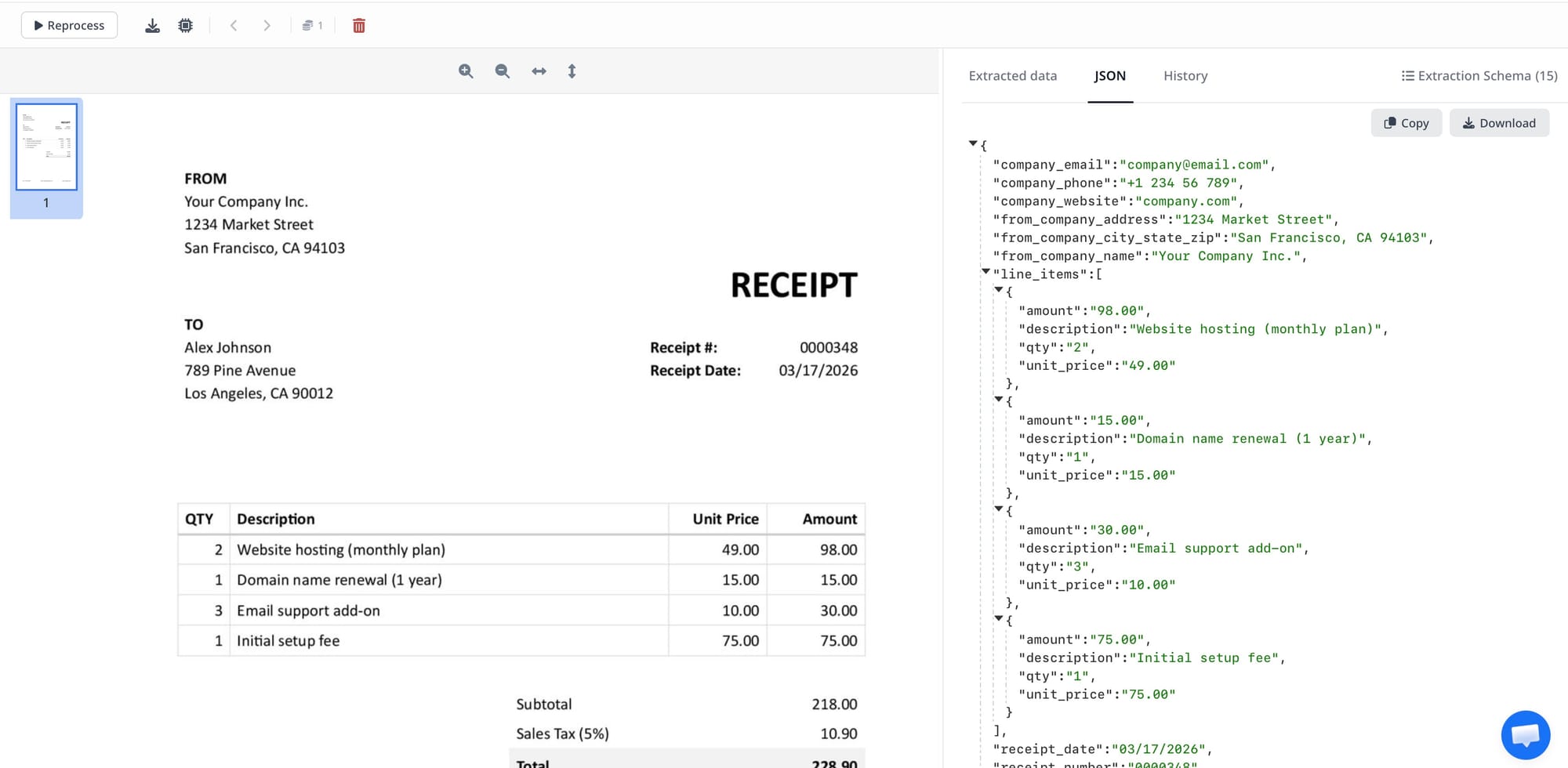 Example: Convert an invoice PDF to JSON